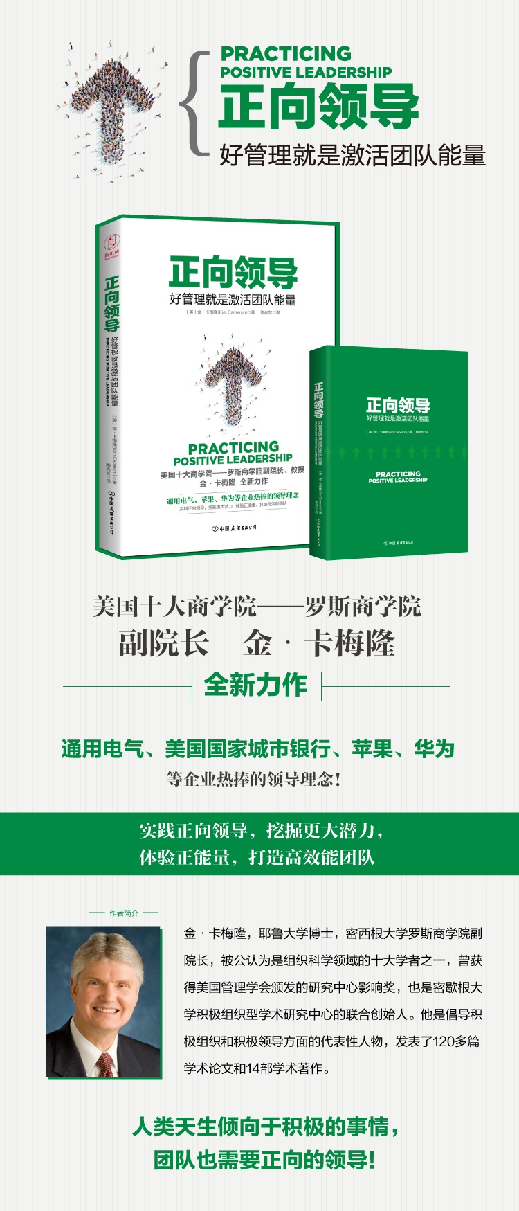 本书的创作激情来自于众多同仁和受人尊敬的领导们的热情反馈,他们希望阅读更多正向领导力实践的相关内容。我在之前的著作《积极领导力》中阐述了正向领导力的四大策略,它们在组织中产生了非同小可的积极作用。这些策略包括:营造积极氛围、建立积极关系、实现积极沟通和构建积极意义。各个组织机构中的实际案例表明,这些策略对于实现我所谓的“积极导向”的绩效水平至关重要——也就是说,它们可以帮助个人和组织在工作中发挥最大潜能,取得最辉煌的进展,体验令人欢欣鼓舞的热情,达到前所未有的积极效果。