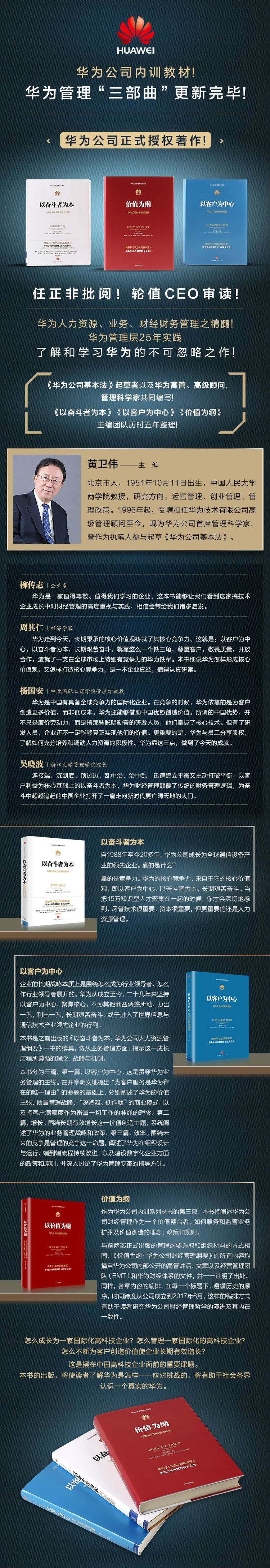 与前两部正式出版的管理纲要选取和组织材料的方式相同,《价值为纲:华为公司财经管理纲要》的所有内容均摘自华为公司内部公开的高管讲话、文章以及经营管理团队(EMT)和华为财经体系的文件,并一一注明了出处。同样,各章内容的编排,在每一个标题下,遵循历史的顺序,时间跨度从公司成立到2017年6月。这样的编排方式有助于读者研究华为公司财经管理哲学的演进及其内在一致性。