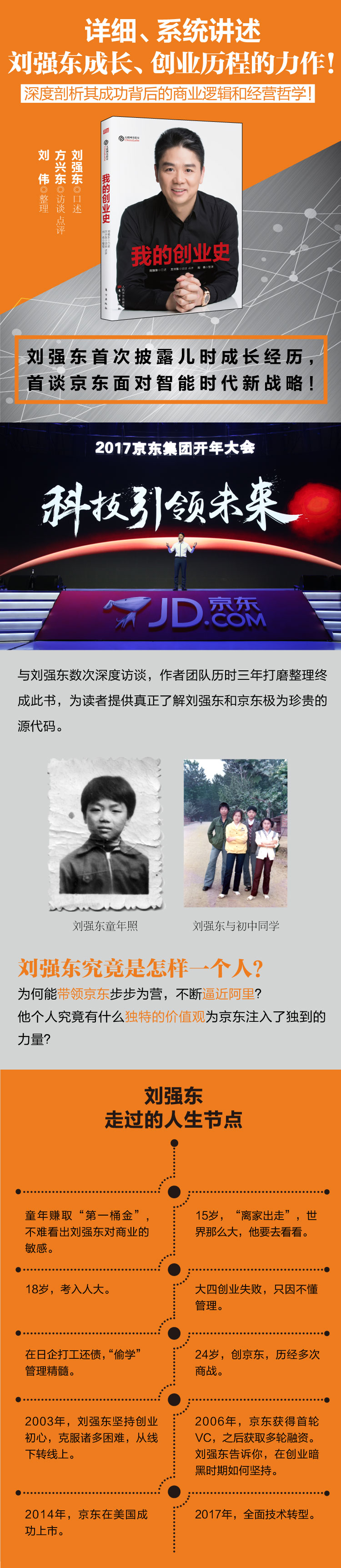 京东和刘强东的故事,对于正在走向全球、面向全新未来的中国互联网业界,提供了一个独特的样本;对于目前前赴后继投身大众创业、万众创新的无数年轻人来说,尤其是广大来自农村的年轻人来说,提供了一个走向成功的豁然开朗的榜样;而对于中国正处于艰苦卓绝转型升级关头的各行各业,也提供了与那些聚光灯下到处都是新鲜时髦的新口号、新术语的互联网精英不同的,另一种更加贴近现实的新路径。而这个故事的意义和价值,可能比大多数互联网巨头的故事更贴近我们每一个普通人的心境。