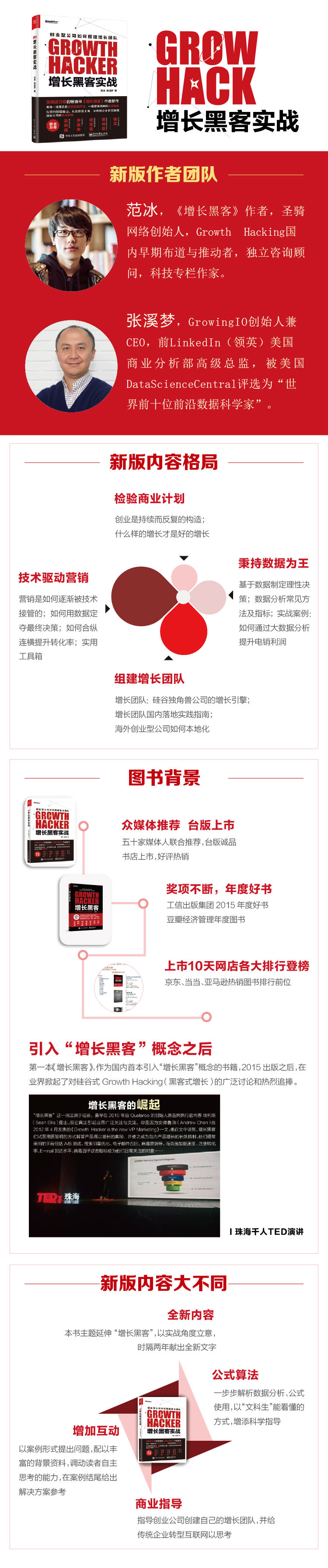 全新内容:本书主题延伸“增长黑客”,以实战角度立意,作者时隔一年零九月献出全新文字。