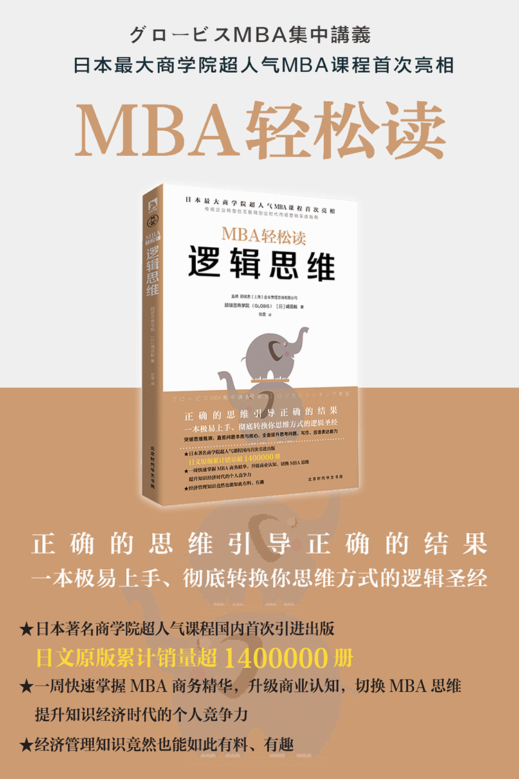 《MBA轻松读·逻辑思维》是MBA核心六门课之一,根据作者讲义编写而成,本书以MBA科目内容为基础提炼精华编纂成书,与实际课堂内容并非完全一致。让读者有如身临课堂的感觉。逻辑思维是商务人士必不可少的能力,在与对方商谈的时候若没有良好的逻辑思维,很可能就会被对方掌控节奏和局面。逻辑思维在企业职场上极为关键,若没有良好的逻辑思维能力,那么学习再多的经营知识也是发挥不了作用的。