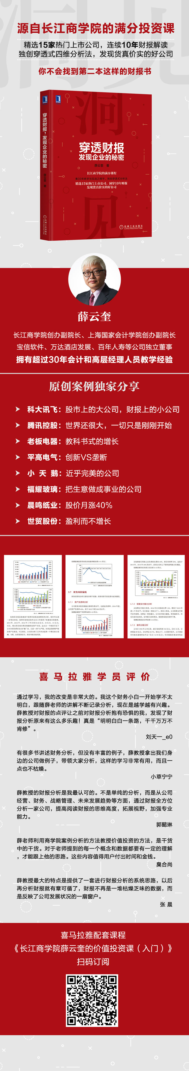 这本书既具有很高的理论价值,又具有很强的实战性,对读者更加深入、系统、全面地认识和理解工商企业大有裨益。同时也会帮助读者提升对会计本质的认识,丰富更多的会计专业知识。因此,本书既可以作为MBA、EMBA学员学习财报分析课程的案例参考书,又可以作为工商管理专业或会计专业本科生、研究生的课外参考书,更可以为信奉价值投资理念的普通投资者提供一个必备的方法论。