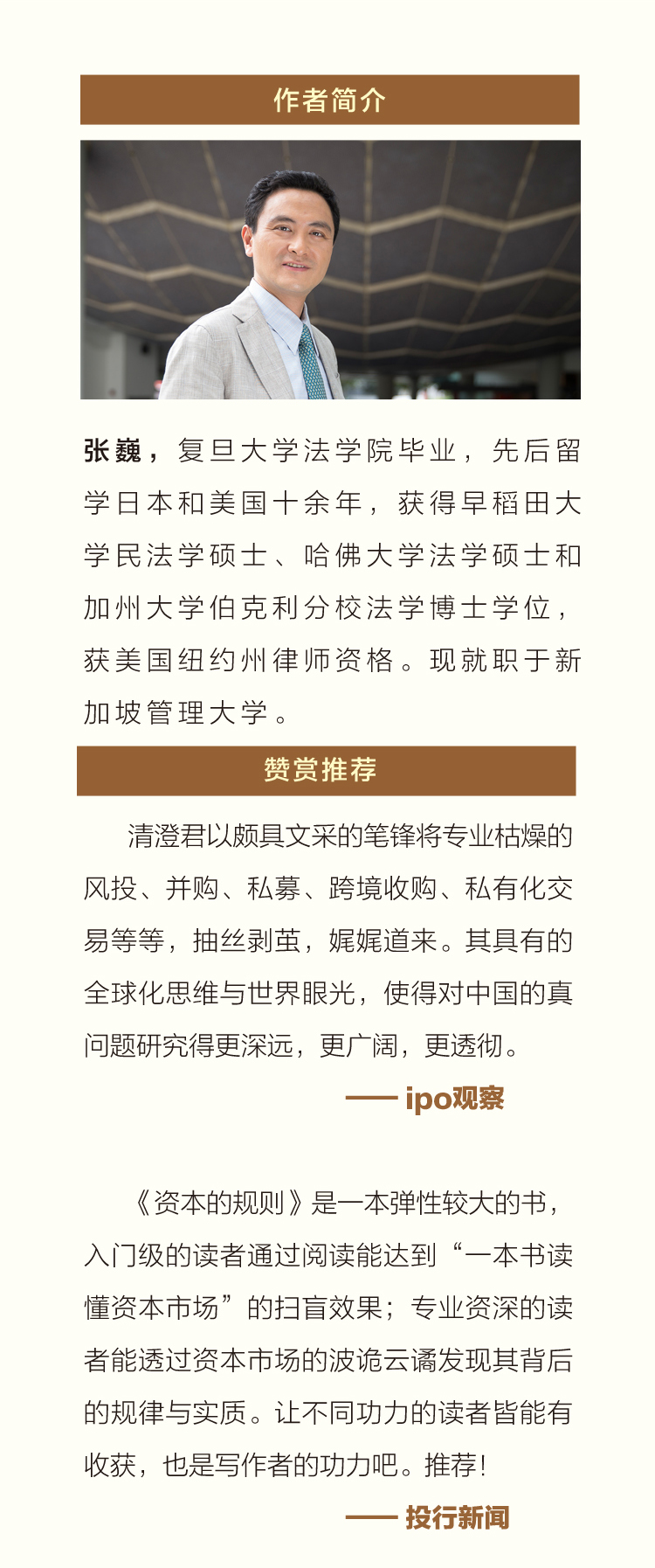 《资本的规则》是一本弹性较大的书,入门级的读者通过阅读能达到“一本书读懂资本市场”的扫盲效果;专业资深的读者能透过资本市场的波诡云谲发现其背后的规律与实质。