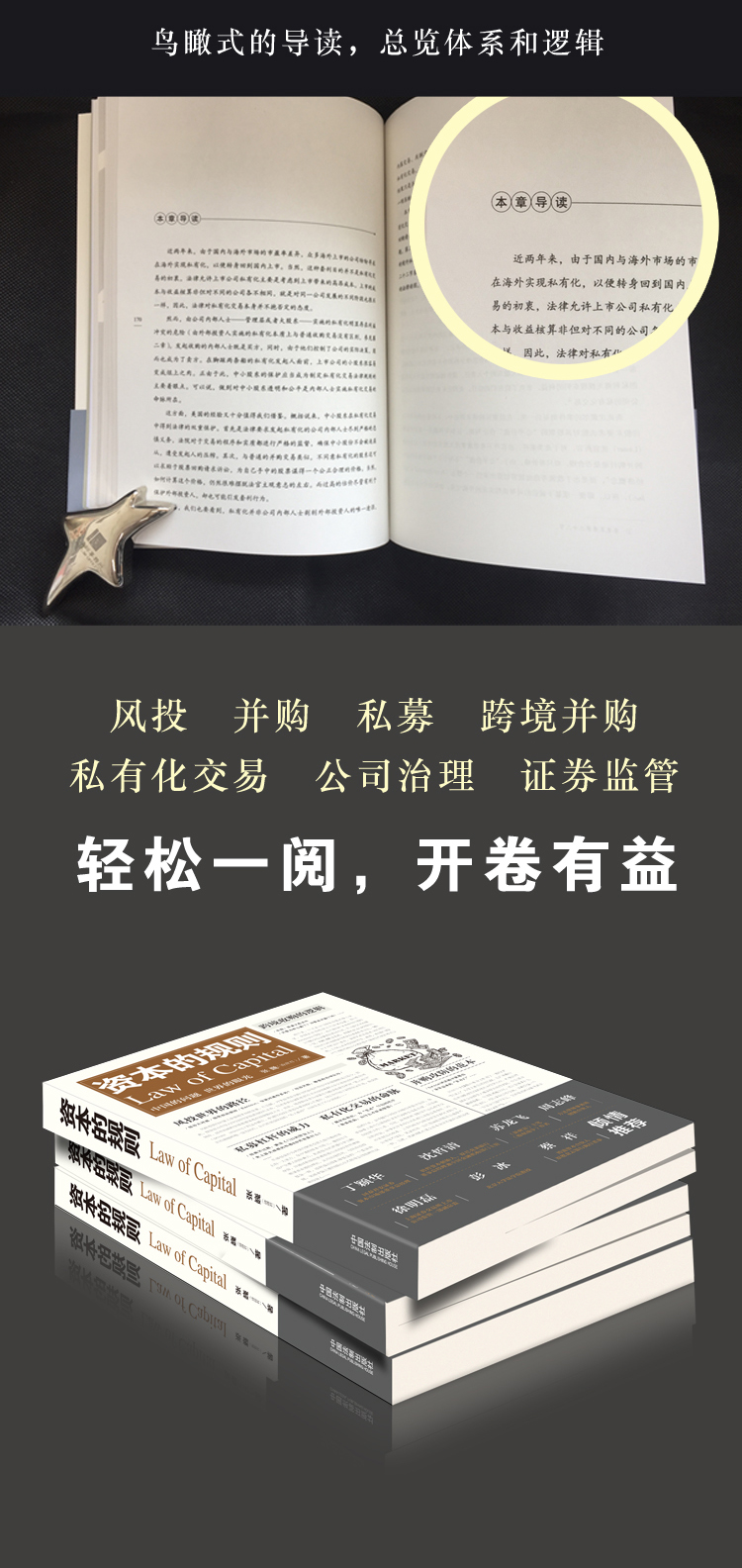 当前,资本市场是一个充满诱惑和浮夸的热词。并购、私募、私有化、跨境并购……专业人士欲以专业来开拓资本市场方向的业务,同时,资本市场却是“乱花渐入迷人眼”。本书作者以通俗易懂文采飞扬的写作风格,基于“中国的问题世界的眼光”将资本市场的游戏规则抽丝剥茧,将现实发生的商战大戏纳入生动的分析之下。同时,将资本市场的关键词进行注释予以说明,堪称一本书轻松地读懂资本市场。