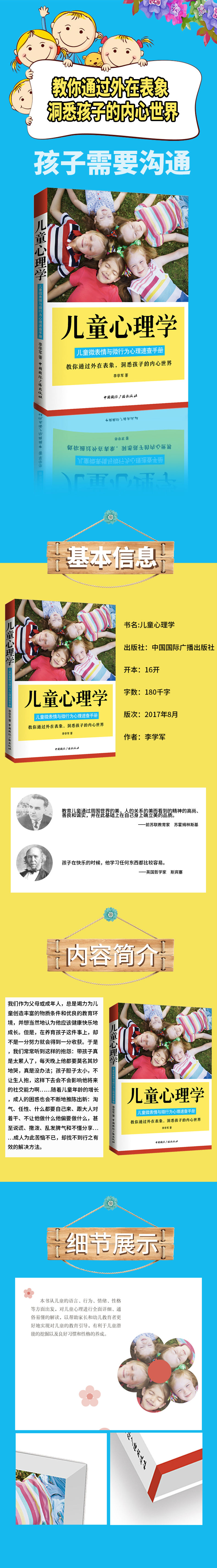 为了不让成人在猜测儿童心理的路上继续迷茫、困惑、无助,我们编撰了这本《儿童心理学》。它适用于任何一个想了解儿童心理学的读者,不管你是家长还是老师,又或者只是对儿童这一“物种”感兴趣。它不会给你高深的理论,却可以让你真正走进儿童的内心,从了解儿童、读懂儿童,再到教育儿童三大方面,让儿童可以从小就做一个开心快乐的小宝贝,长大后成为一个积极上进、身心健康的社会人,进而拥有自己幸福、美好的人生。