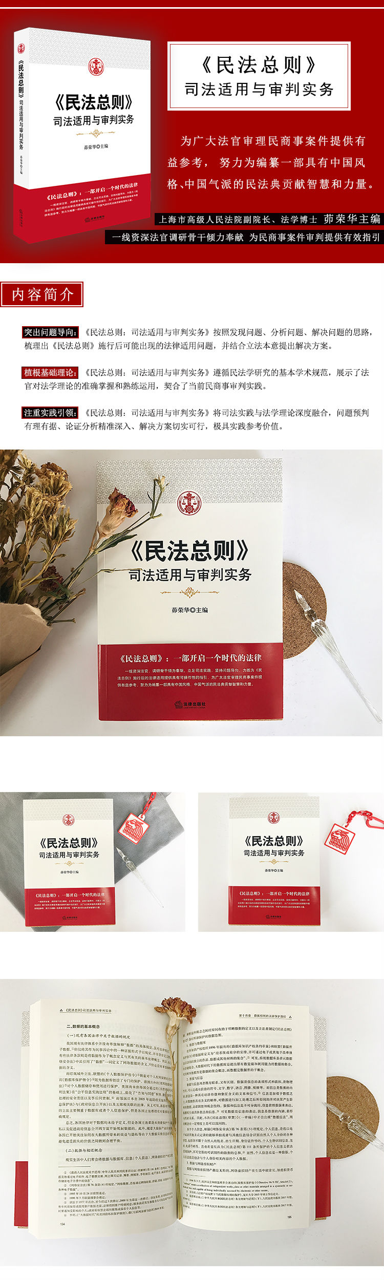 “徒善不足以为政,徒法不能以自行”,法律的生命在于实施,而法律特别是民法实施的关键在于法院。2017年10月1日民法总则开始施行,必将给民事诉讼领域的法律适用带来深刻影响。为此,上海高院专门成立了民法总则兴趣研究小组,召集各相关审判部门的法官研究民法总则司法适用的有关问题。呈现在读者面前的这本《〈民法总则〉司法适用与审判实务》,正是上海高院法官研究民法总则适用、完善中国民法理论体系的成果。与目前已有的诸多民法总则注释类著作不同,本书以司法实践问题为导向,紧密结合当前民商事审判实践,着重从审判实务的角度分析研讨民法总则适用中可能存在的问题及相应解决方案,为民法总则正式施行后的法律适用提供了具有可操作性的指引,具有较高的实践价值和理论价值。我期待有更多的法官投身于民法研究,为编纂一部具有中国风格、中国气派的民法典贡献智慧和力量。