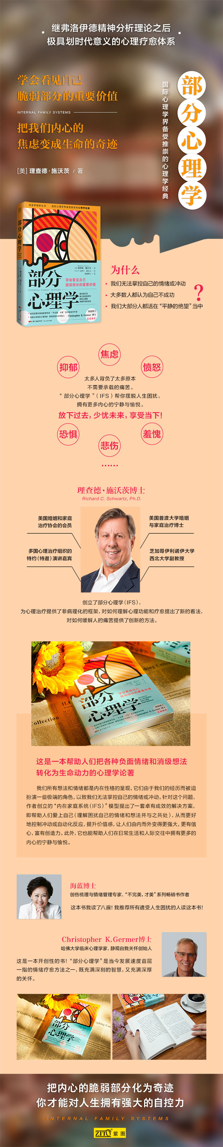“部分心理学”的创造性不仅在于它提出了现代心理学革命性的观点并发展壮大,还有一系列切实可行的有效方法,帮助我们从各种带有偏见、歧视、禁锢的观念中得到解放,看到生命的充实丰盈和希望,而不是让抑郁、焦虑、愤怒、恐惧、悲伤、羞愧影响自己的生活。