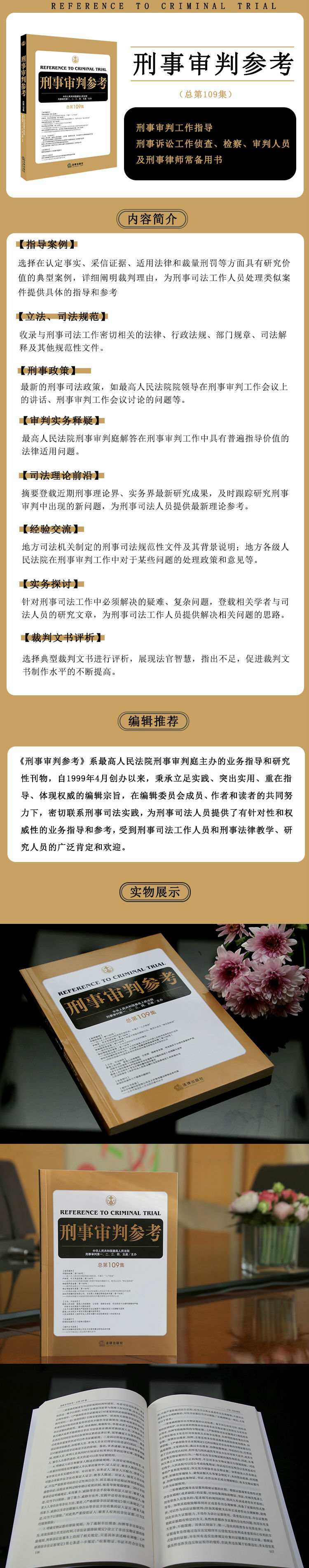 《刑事审判参考》系zuigao人民法院刑事审判庭主办的业务指导和研究性刊物,自1999年4月创办以来,秉承立足实践、突出实用、重在指导、体现权wei的编辑宗旨,在编辑委员会成员、作者和读者的共同努力下,密切联系刑事司法实践,为刑事司法人员提供了有针对性和权wei性的业务指导和参考,受到刑事司法工作人员和刑事法律教学、研究人员的广泛肯定和欢迎。