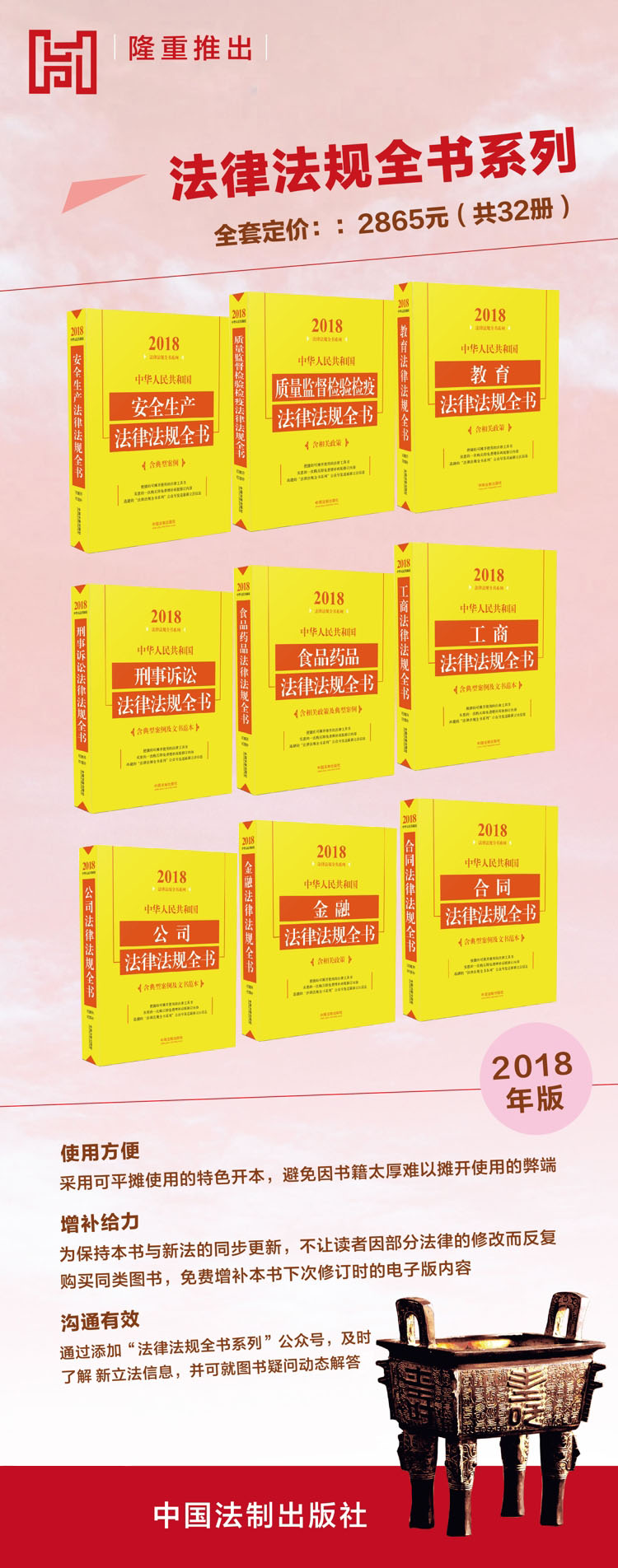 3.免费增补,动态更新。一次购买即免费增补再版修订内容,迅捷的“法律法规全书系列”公众号发送新立法信息。