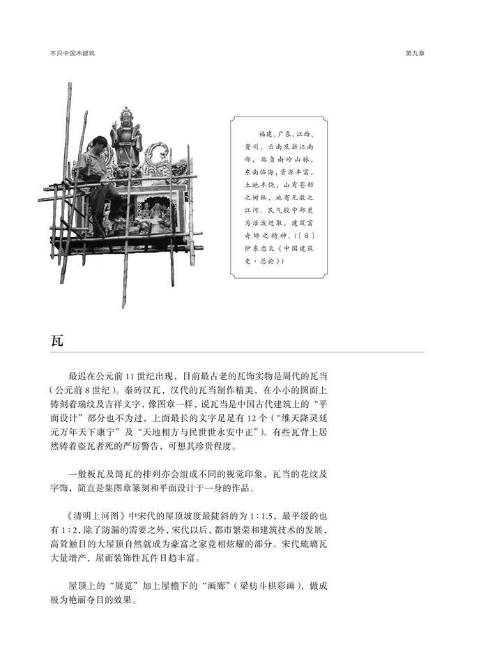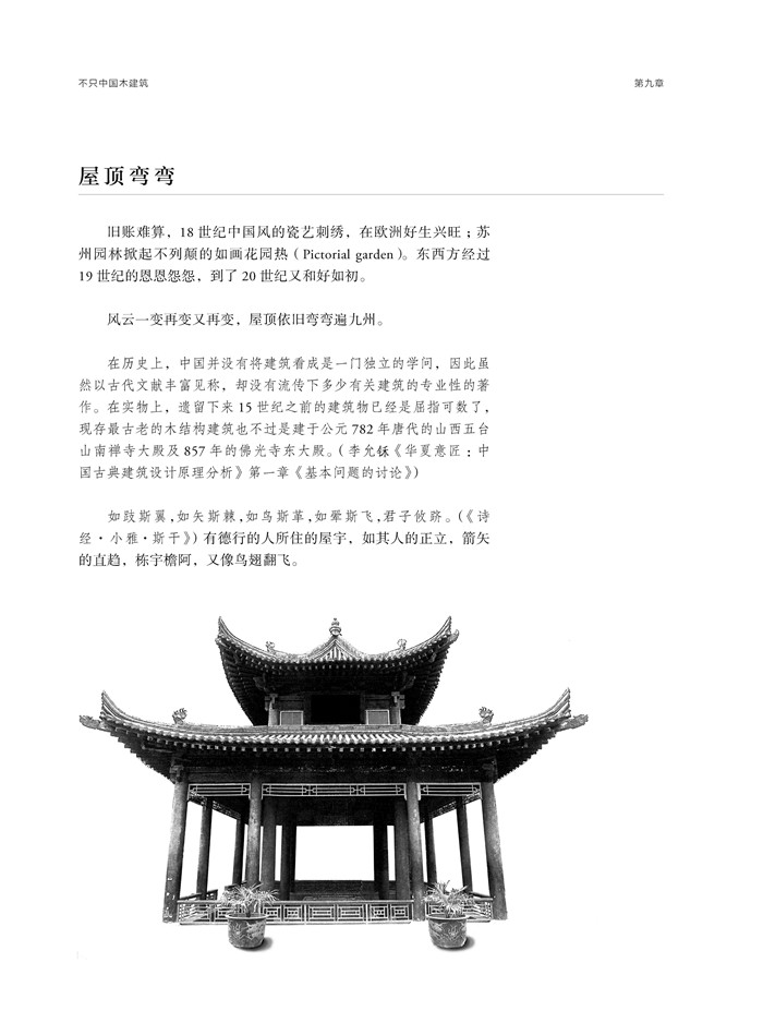 中国建筑往往只在实际营造工程上才成为独立的部门,在整个文化意义上却充满“无定形”的活泼性质,活泼到竟然令人觉得它“一点也不活泼”,只好推说是某些不认真的电影布景所惹出来的祸。