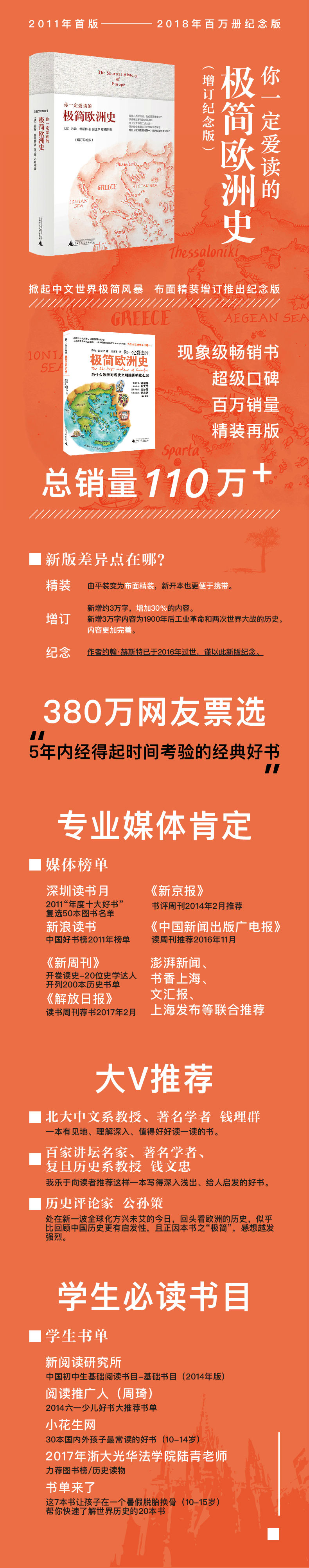 本书是澳大利亚知名历史学家约翰·赫斯特为普通读者解读的欧洲史,以极简的篇幅完成,为读者梳理出欧洲文明所以能改变世界的各种特质。中文简体版出版以来,广受媒体赞誉及读者欢迎,已畅销数百万册。此次是根据新版(篇幅增加两章)推出的精装纪念版,装帧非常精美(护封加布面精装),文字内容更为丰富(增补第三部分两章内容,约三万字),译文也做过精心校订。值得阅读收藏的一个版本。