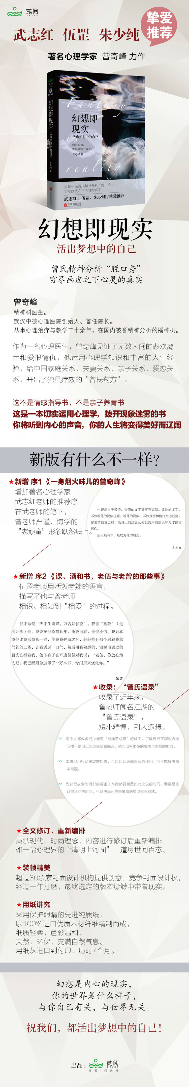 1.曾奇峰老师为著名心理学家、畅销书作家,是科班出身,首期中德高级心理治疗师连续培训项目学员,精神科副主任医师。武汉中德心理医院创始人、首任院长,并非半路出家的情感专家。因此,本书强调心理学的运用,强调彻底解决人们的心理问题,与陆琪等情感指导的图书截然不同。
