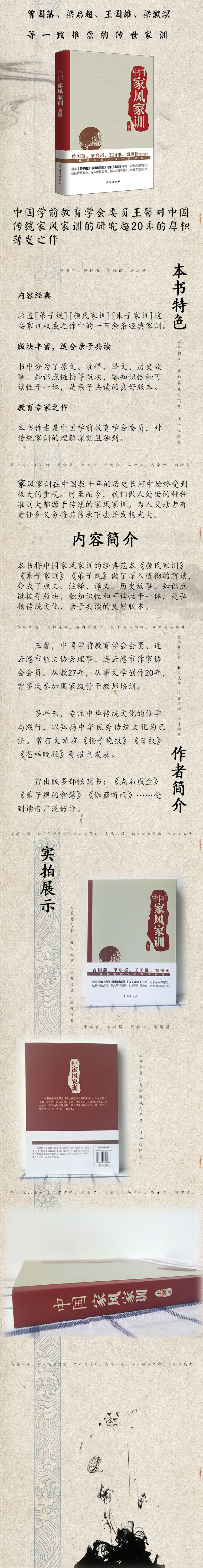 作者王馨是中国学前教育学会委员,对中国传统家风家训的研究多年,其理解与解读非常深刻与独到。本书是其多年研究后的厚积薄发之作。