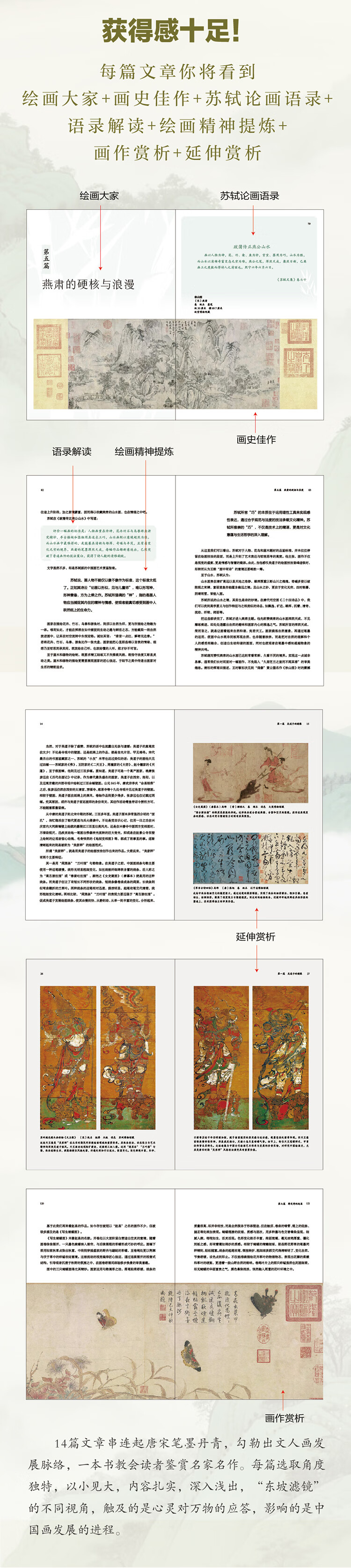 ² 获得感十足!每篇文章你将看到:绘画大家+画史佳作+苏轼论画语录+语录解读+绘画精神提炼+画作赏析+延伸赏析。