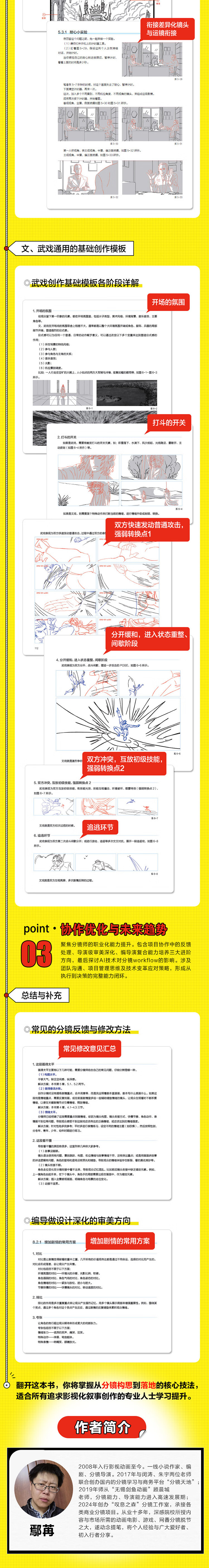 鄢苒,2008年入行影视动画至今。一线小说作家、编剧、分镜导演。2017年与闵涛、朱宇两位老师联合创办国内的分镜学习与商务平台“分镜天地”;2019年师从“无锡剑鱼动画”顾晨城老师,分镜能力、导演能力进入高速发展期;2024年创办“叹息之森”分镜工作室,承接各类商业分镜项目。