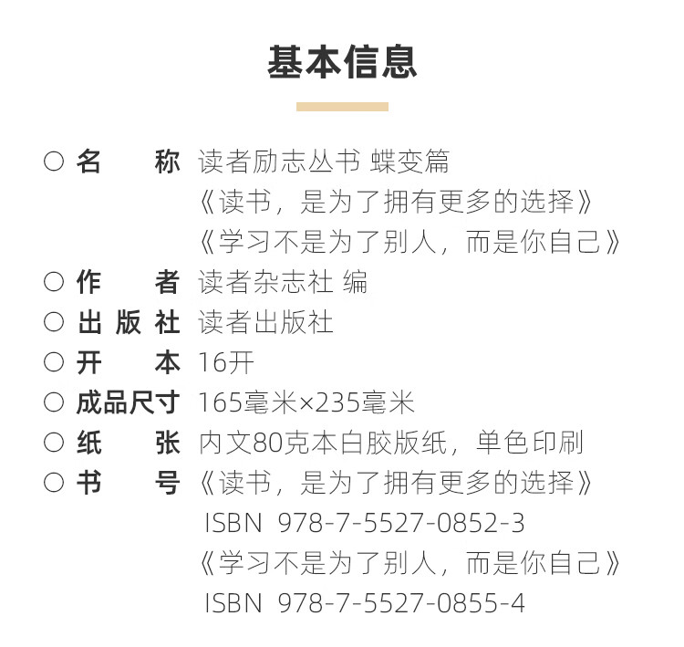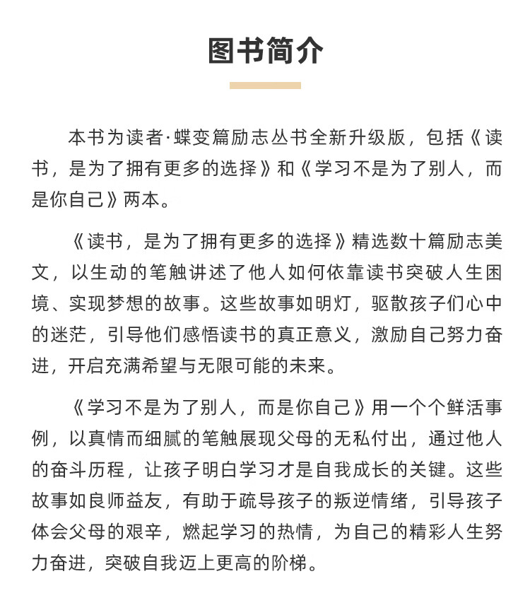 读者励志蝶变篇全新升级版全2册读书是为了拥有更好的选择 学习不是为了别人而是你自己 收藏